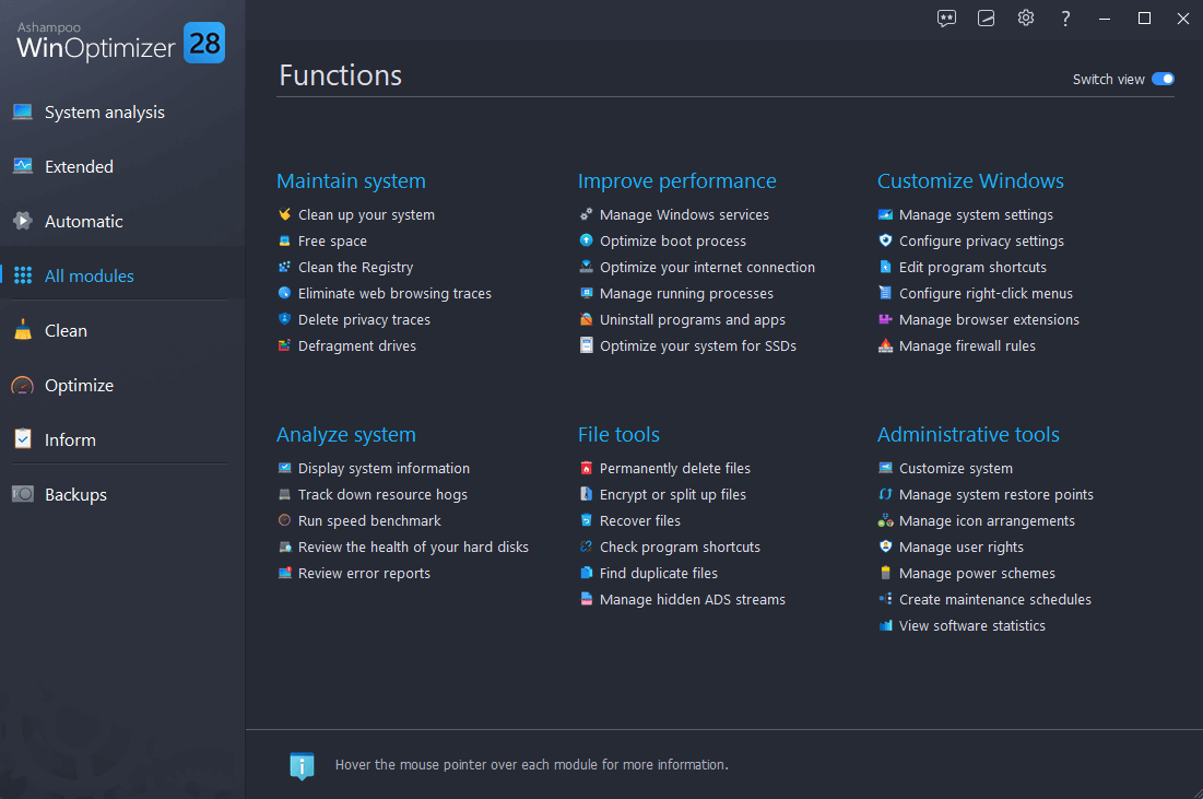 Más de 30 módulos de primera categoría para cada propósito: más allá de los limpiadores y la optimización